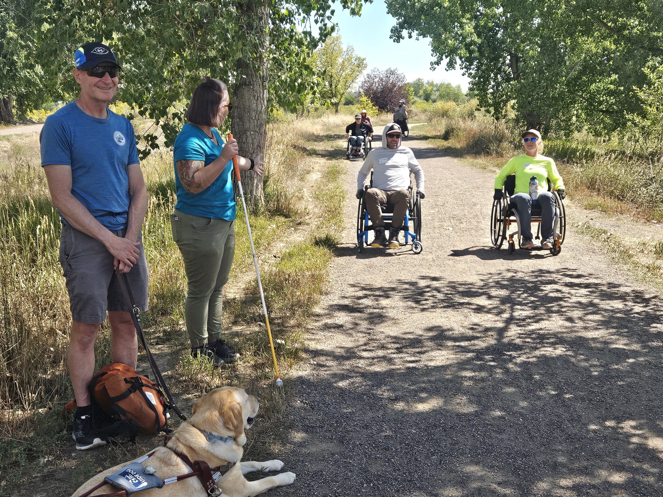 2. Outdoor Accessibility for AllThis training took place at Pella Crossing Park in Longmont to provide for a hands-on trail experience. The presentations covered an orientation to accessible recreation including an overview of best terminology and etiquette; working through scenarios in small groups; and roundtable sharing of ongoing accessibility work in the region. Participants heard from representatives of Omni Accessible, Every Body Outside Consulting, The Traveling Gnomes, Camp Always Choose Adventures, and Blindfulness.